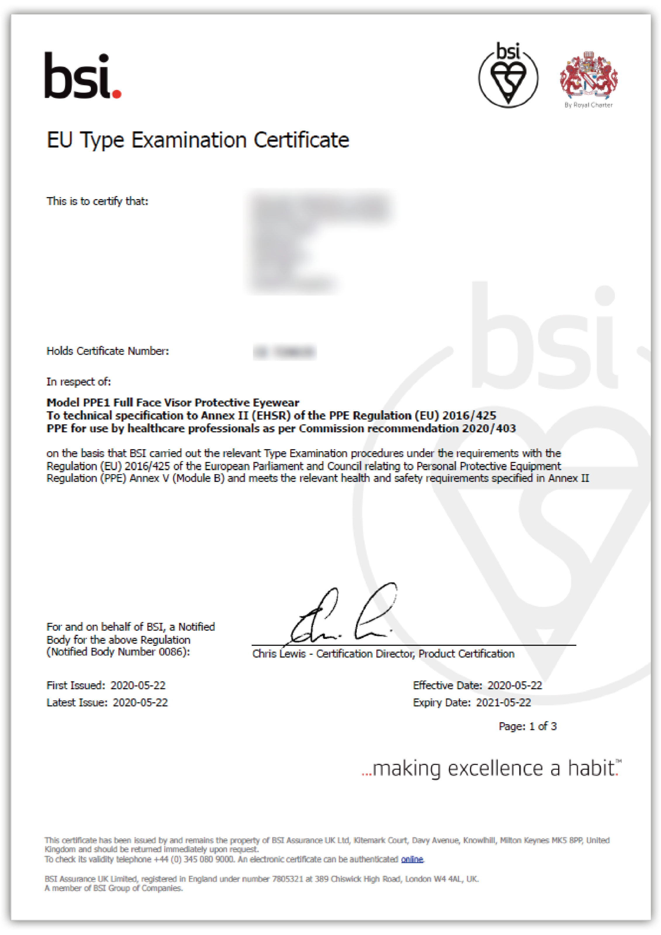 To be awarded BS EN 166: 2002 Personal Eye Protection Safety Standards so each of our shields can proudly display the famous British Kite mark.