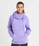 70% ringspun cotton/30% polyester.* Soft cotton faced fabric. Brushed back fleece. Drop shoulder style. Three panel double fabric hood with flat lace drawcord. Crossover neck detail. Front pouch pocket. Ribbed cuffs and hem. Thumbholes on cuffs. Twin needle stitching. Tear out label.
