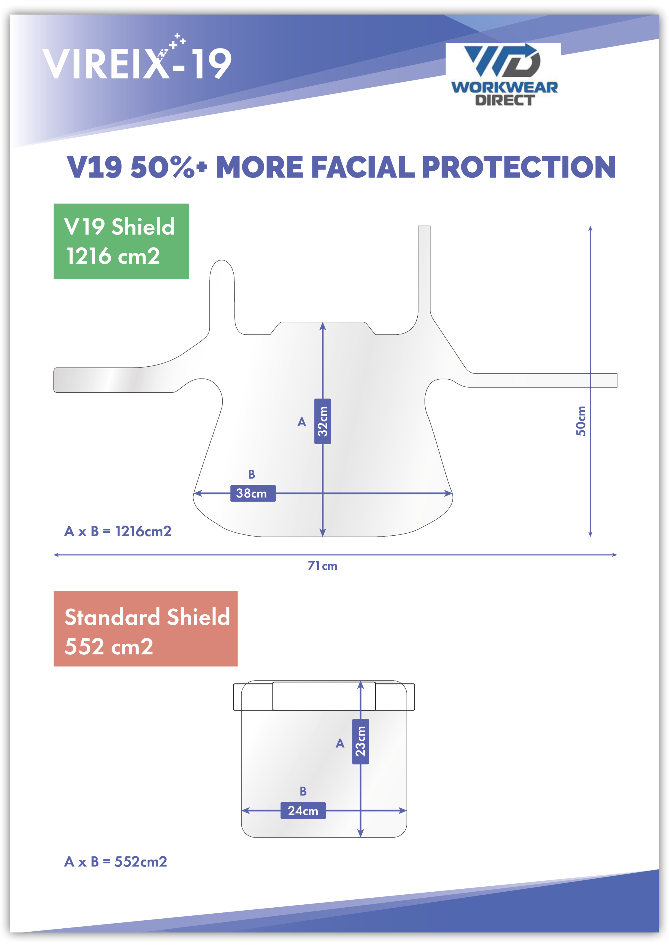 In addition to that, as the V19 Face Shield is made from one piece of thermoformed, impregnable PET, you can easily sanitise it from any harmful bacteria making it re-usable.